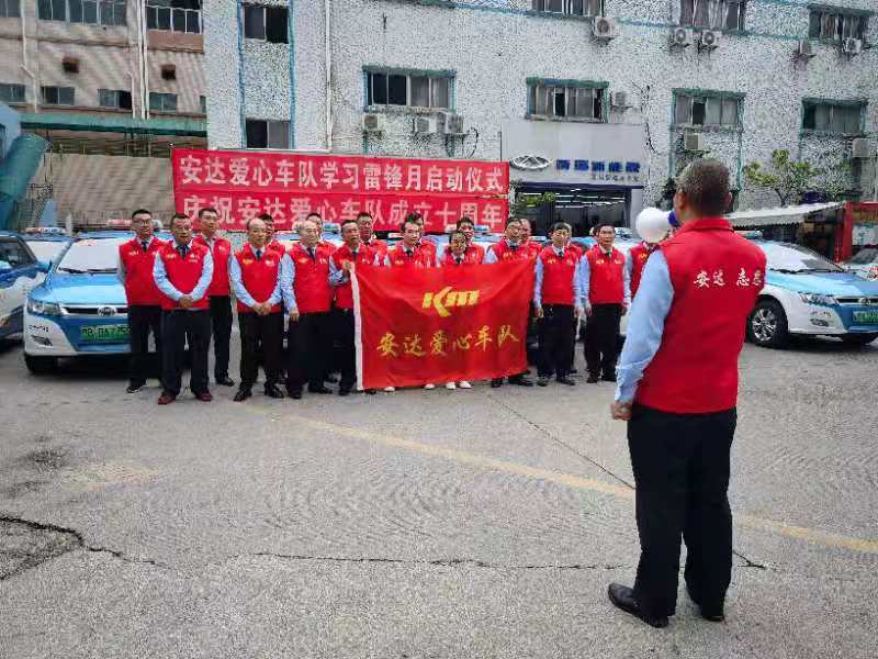 为积极响应和配合主管部门学雷锋月的倡议和号召,弘扬雷锋精神,深入开展学雷锋活动,安达爱心车队开展了“爱心无界限,真情暖人间”为口号的学习雷锋活动。3月5日在公司举行安达爱心车队学雷锋月启动仪式,仪式结束后爱心队员们到蛇口人民医院定点为有需要人士提供免费乘车服务。3月份,安达爱心车队将开展为期一个月的爱心活动,为老弱病残孕等有需要的人士提供安全、周到的免费乘车服务。